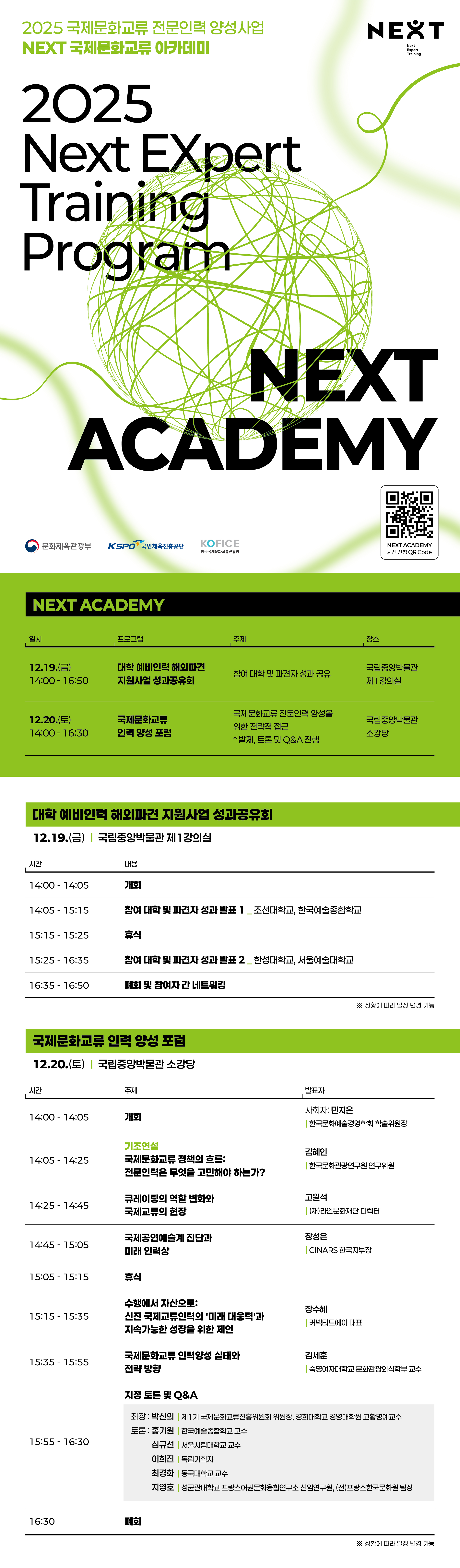 2025 ±¹Á¦¹®È±³·ù Àü¹®Àη¾缺 Æ÷·³(NEXT ACADEMY) Çà»ç ¾È³» ¹®ÈüÀ°°ü±¤ºÎ, ±¹¹ÎüÀ°ÁøÈï°ø´Ü, Çѱ¹±¹Á¦¹®È±³·ùÁøÈï¿ø¿¡¼ ÁÖÃÖÇÏ´Â "2025 ±¹Á¦¹®È±³·ù Àü¹®Àη¾缺 Æ÷·³ "NEXT ACADEMY" Çà»ç¸¦ ¾È³»µå¸³´Ï´Ù. NEXT ACADEMY´Â ÇöÀå Áß½ÉÇü ±³À° ÇÁ·Î±×·¥À¸·Î, ¿Â¶óÀÎ ¾ÆÄ«µ¥¹Ì¿Í Àü¹®°¡